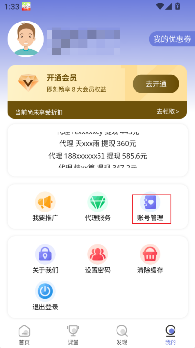 2、点击后进入个人信息界面,点击其中的【账号管理】选项;