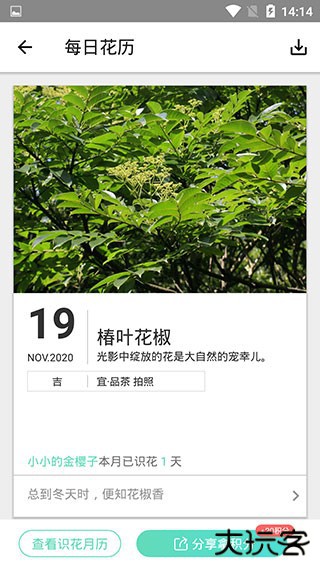 2、分享美图:一键生成有诗词花语的植物美图。