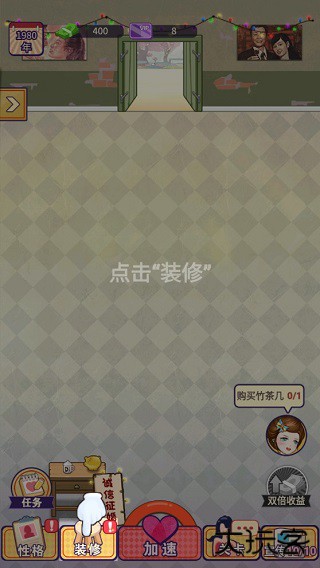 2、通过漫画剧场的了解,我们的女主也面临相亲困扰,现在你需帮助她模拟上时代的婚介所的介绍过程,并不断发展你的婚介所。要想经营婚介所,得先买一张桌子。点击“装修”