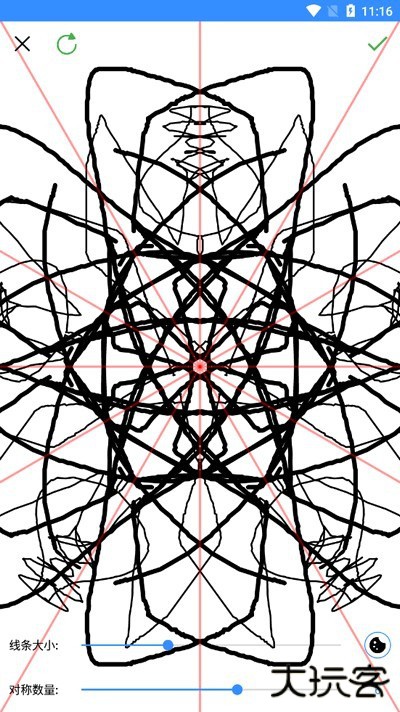 2.如果想要对称绘画,可以设置线条大小以及对称数量以及画笔颜色进行绘画。