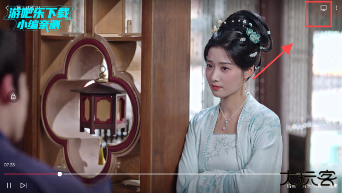 2、再搜索查找想看的影片,找到后在影片播放界面中点击投屏标志