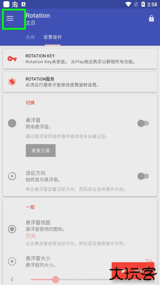 (2)支持强制自动旋转、强制纵向、强制横向、反转纵向、反转横向、传感器纵向、传感器横向。