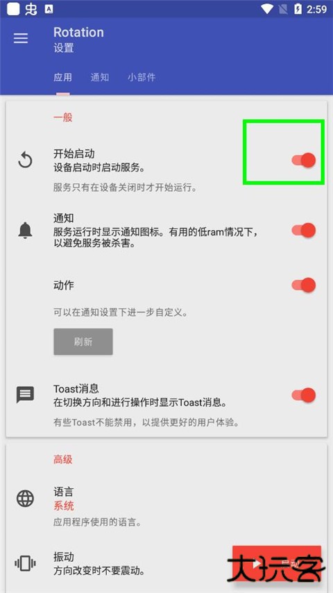 (3)包含启动时启动、通知、通知切换、通知优先级、Toast 消息、振动等功能。