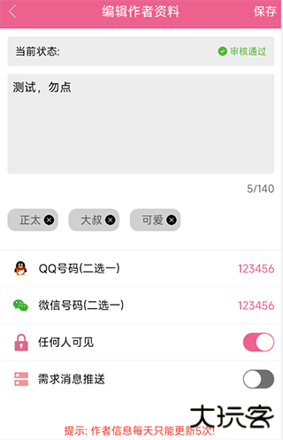 1、打开配音>成为作者/作者中心>资料管理,填写资料等待审核通过