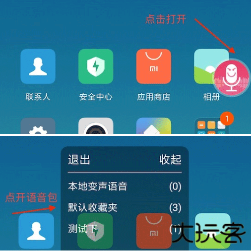 5、然后按home键,返回到桌面, 点击右侧悬浮球,点开语音包,播放即可
