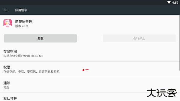 5、点击“应用程序信息”最下面的“权限”;
