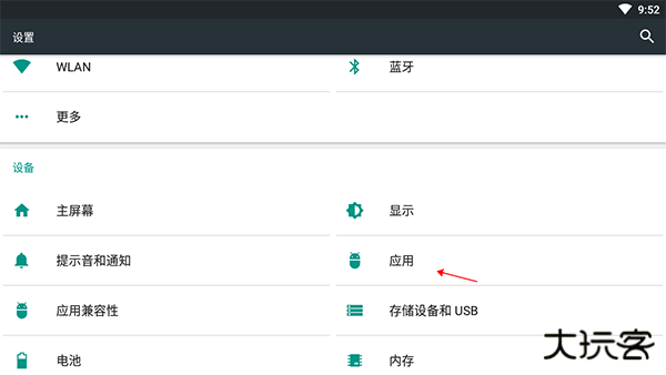 2、点击“设置”列表中“管理应用程序”;