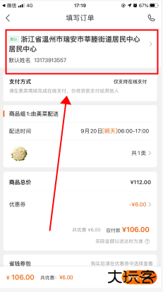 1、我们可以在支付页面进行更改收货地址,点击下图标记处。