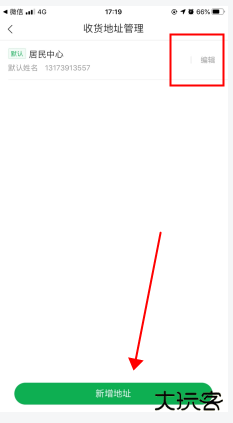 2、我们可以进行已有收货地址的编辑,或者点击下方的【新增地址】。