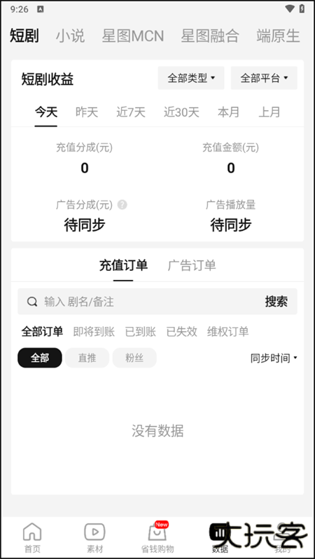 4、在数据界面下,我们能够看到自己的短剧收益情况。