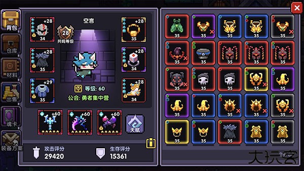3、像素复古射击玩法,游戏元素非常的丰富,成熟装备系统,强力套装等你来收集。