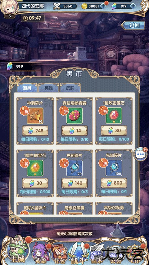 每日必买20钻的高抽卷和10万金的英雄进阶石,钻石有盈余的600钻的先知球也可以买