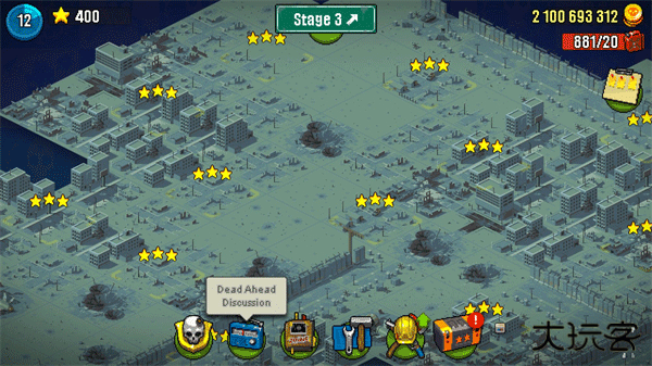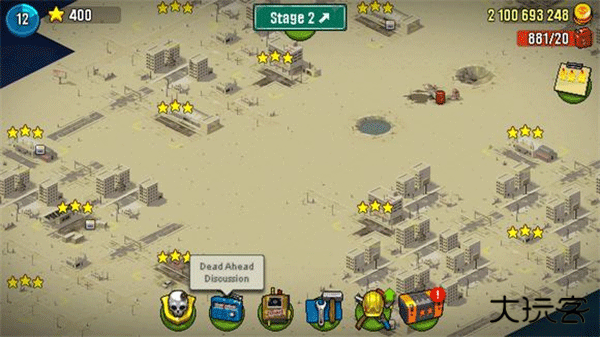 2、第二大关,难度上来了,跑尸增多了,拿三星有困难,需要记住僵尸的路线,掌握对投弹兵的使用方法,实在过不去就卖车(损失巴士血量,让卡尔杀僵尸)。