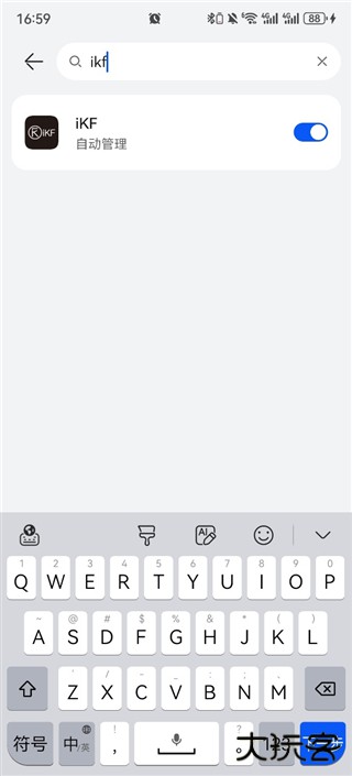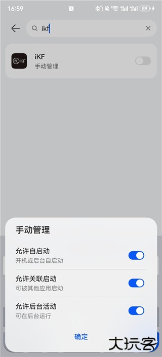 4、开启iKF的“允许自启动”、“允许关联启动”和“允许后台活动”开关;