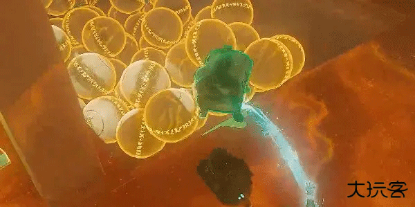 8、我们来到下图位置,将圆球都推走,角落圆球底部可以找到一个宝箱,打开后可以获得【左纳尼乌姆之强大剑】。