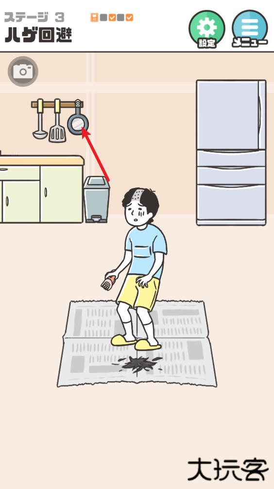 然后对准秃了的部分照镜子皆可看到发根,点击即可生长,然后就能顺利过关了。