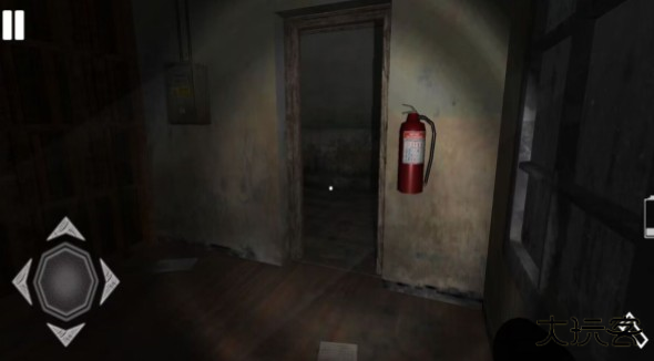 左侧虚拟键控制移动角色,玩家被困在密室中,玩家需要搜寻各种道具逃出这个恐怖的地方