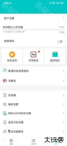 最后就是我们的个人界面了,在这里我们可以进行会员的升级以及文章字体的购买,还有询问软件相关的问题。