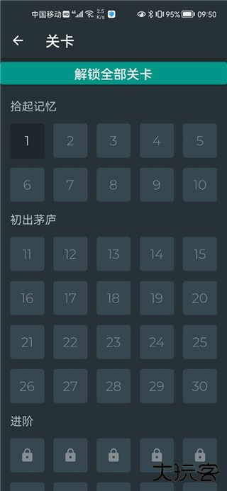 1、划分不同的关卡难度阶段,其中有拾起记忆、初出茅庐以及进阶等不同难度;