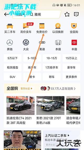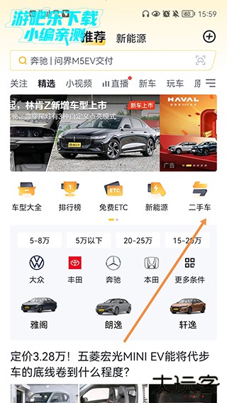 1、打开app,随后在首页顶部菜单栏中点击二手车。