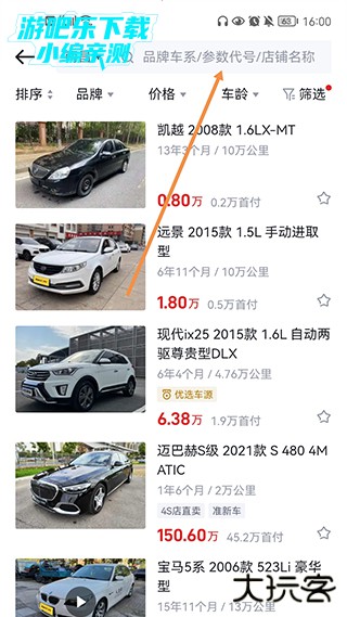 3、点击搜索框,输入要查询的二手车型号,即可查到价格。