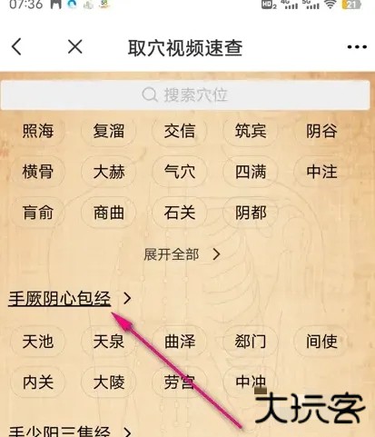 仔细阅读文本内容,点击对应的穴位。界面跳转,即可查看解剖取穴视频详情内容。