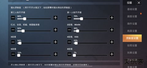 注意:因为每个玩家的手机以及操作方法不同,小编建议修改完灵敏度之后去训练场(训练场进入方法>>)试试,在进行一次微调,改到适合自己。