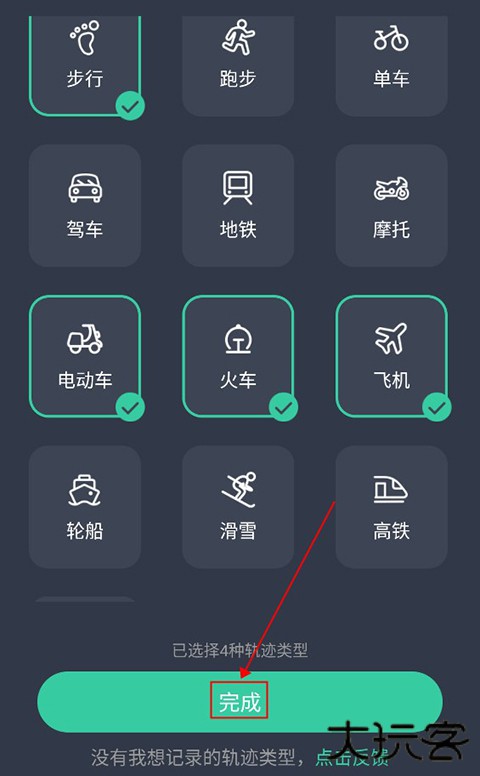 2、然后就可以选择自己常用或者要记录的运动方式,选择好点击下方完成即可。