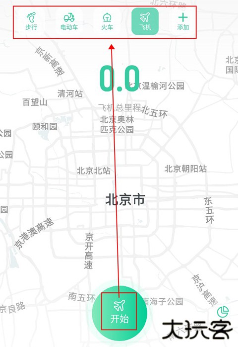 3、之后就可以在上方选择自己要记录的足迹类型,点击开始就可以啦!