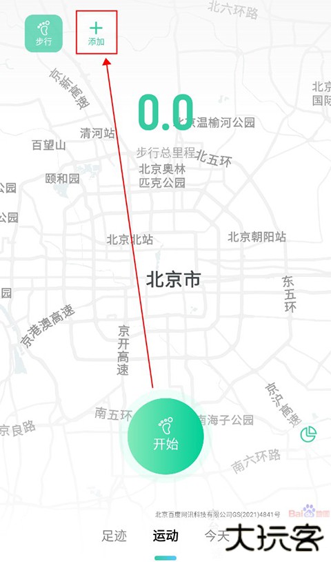 1、用户在运动页面,点击左上角的添加,增加足迹类型。