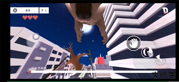 看见最高的大楼上有一只不愿下来的大熊,但是你别轻易招惹它哦,巨型的生物没一个是塑料,而已这家伙妥妥的就是BOOS级别的生物,激光可以秒你,但是你不攻击它的情况下,过一段时间仇恨就会消失了,此时你会看到巨熊和你大眼瞪小眼呢,无论你走到哪里,它那双眼睛也就只盯着你看。