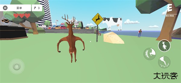 2、玩家们的鹿一共有3个心,被警察追杀的时候也只会慢慢磨掉你的血,但是被考拉这些打BOSS打倒是一击毙命的。