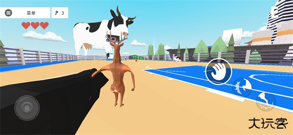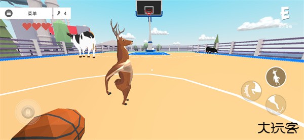 有人可能就疑惑了,奶牛去哪找?别急,整个地图里一共三只奶牛,复活的时候看见远处最大的牛,我们向那里跑过去,就会看见篮球场,里面有两个奶牛在玩耍,随便抓一只走就可以了。