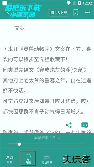 2、进入小说阅读后,点击手机屏幕中间的位置,唤出小说阅读设置菜单;