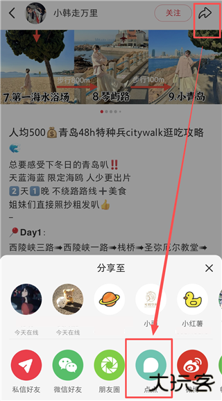 5、若大家有喜欢的小红书攻略,可以直接分享来点点。