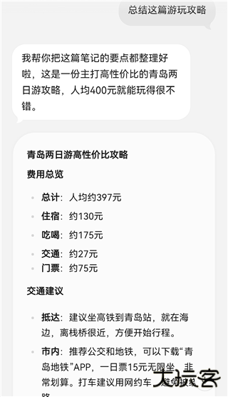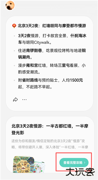 4、点点就会搜索各种信息,生成一份专属攻略。