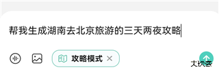 2、在输入框中输入你的需求,如:帮我生成从湖南区北京旅行的三天两夜攻略。