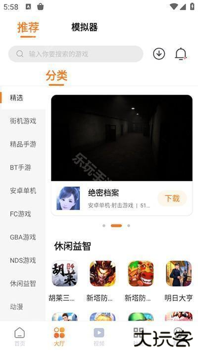 1、进入首页,玩家可以选择通过不同的方式来寻找游戏体验,如分类、新游