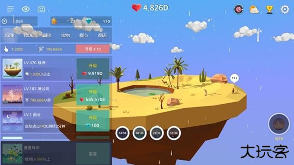 我的绿洲是一款治愈画风的模拟经营手游,游戏中,玩家需要通过收集爱心和演奏音符,把荒凉的沙漠空岛改造成充满活力的绿洲。游戏的核心玩法涵盖了点击获取爱心、用爱心解锁植物、通过音符互动触发特殊的天气效果,以及建造防御设施抵御怪物的袭击。同时游戏支持玩家自定义绿洲布局,玩家可以随心放置,设计出独一无二的岛屿。快来我的绿洲打造出属于你的梦幻天空岛吧!