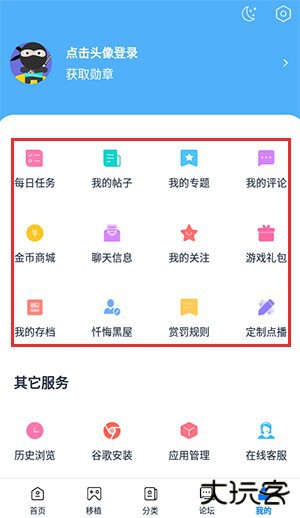 6、点开我的,可以查看每日任务、我的帖子、我的专题、我的评论、金币商城等。