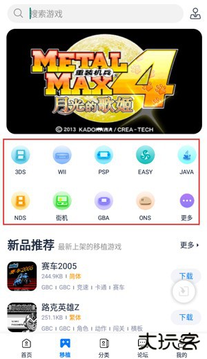 3、点开移植,可以查看3DS、WLL、PSP、EASY、JAVA等多种移植类的手游;