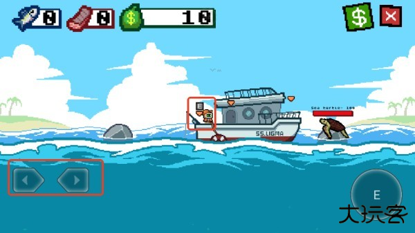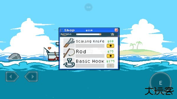 5、使用右上角的按钮进入商店购买升级您的刀,钓鱼线,和钩!