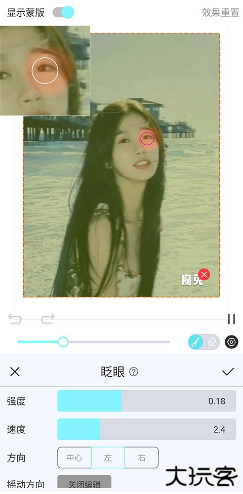 5、例如最火的眨眼特效,调整画笔的粗细,涂抹眼睛区域,就可以啦。