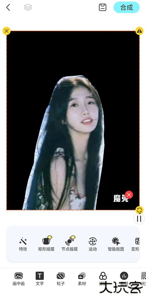 6、还可以抠图哦,都是免费的功能,完成后点击右上角的“合成”就可以保存到相册了。