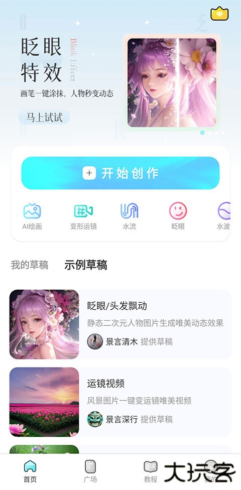 2、超多特效,眨眼、水流、衣裙摇摆、水波纹、眼球跟踪、光效、节点摇摆动画等图片特效。