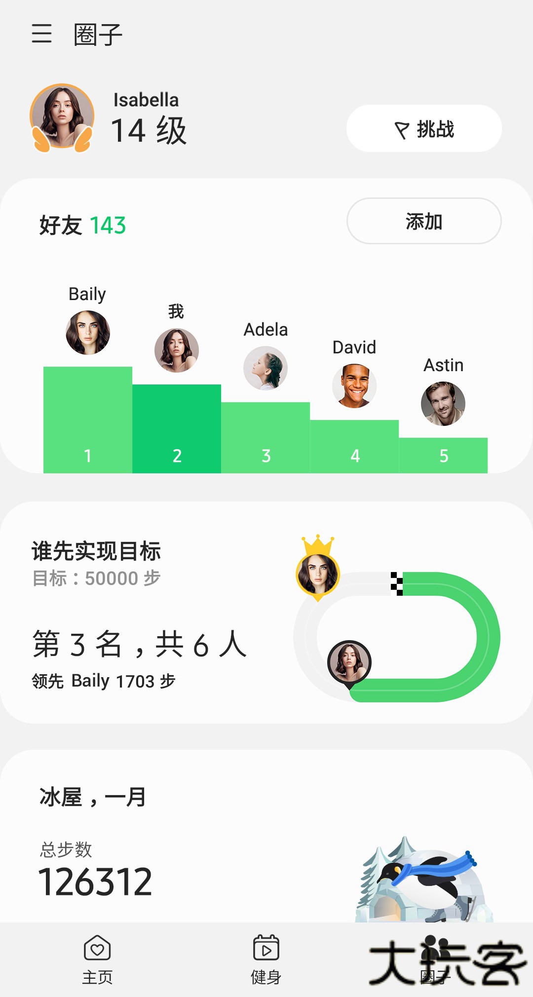 邀请你的朋友参与挑战,与朋友一起健身,乐趣无穷;