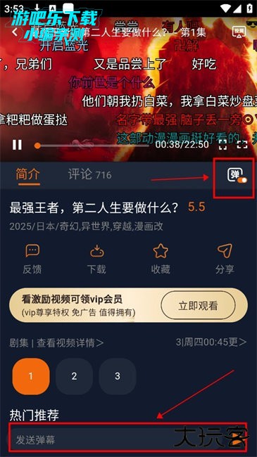 ps:到达500金币后可开启弹幕发送和评论发送功能