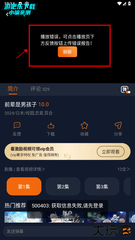 最近不少用户反馈,点击页面播放,弹出500403:获取信息失败,请先登录账户的错误;