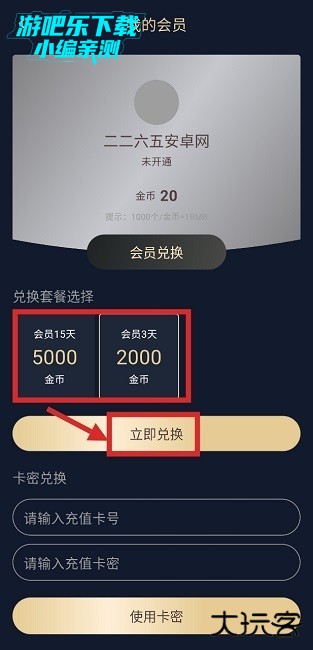 4.进入会员专区,根据需要选择套餐后点击“立即兑换”
