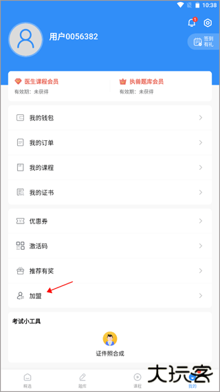 1、打开宠壹堂app,切换到【我的】页面,点击下方的“加盟”。